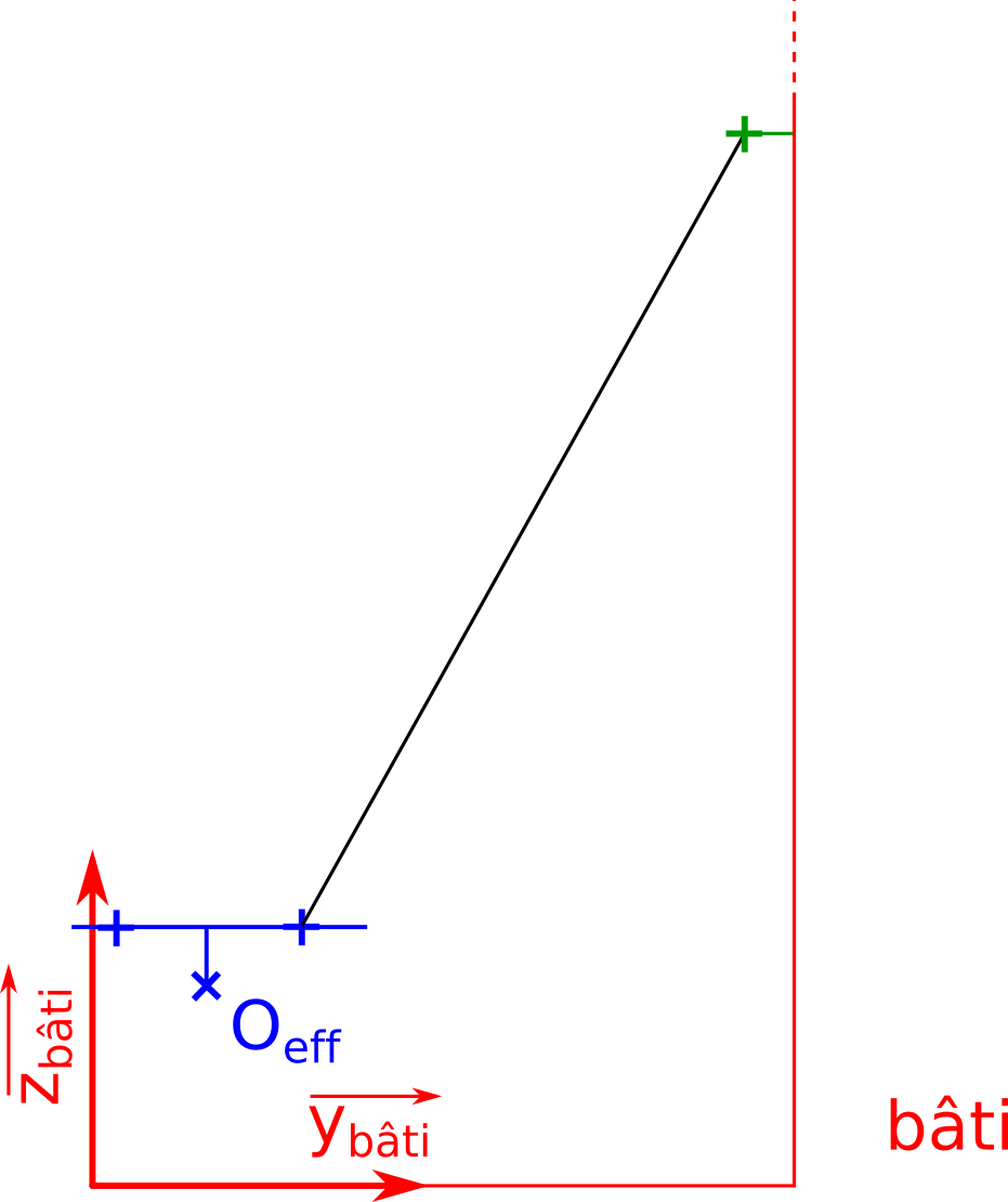 Question 2.6 : Mesurer les dimensions des paramètres qui sont des constantes géométriques pour ce modèle. Saisir dans le fichier ecriture_vecteurs_parametres.m à la ligne 3 les noms des variables symboliques représentant ces constantes géométriques. Saisir ensuite, dans le même ordre, leur valeurs numériques à la ligne 5. Donner à la ligne 8 l’index du paramètre de longueur de barre, dans le vecteur de paramètre construit précédemment (ligne 3).